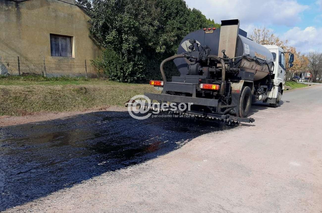 En ese sentido se destaca el inicio de la aplicación del primer riego de asfalto con gravilla en algunas calles, habiendo culminado la recomposición de la base granular en las restantes luego del retiro de la capa bituminosa deteriorada.