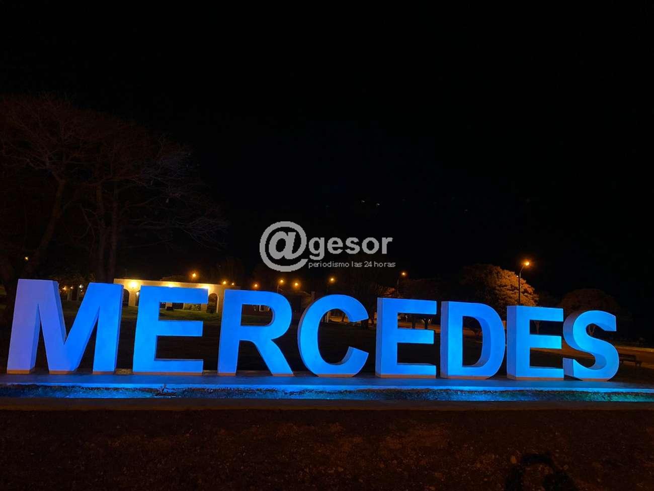 Las letras corpóreas de Mercedes lucen iluminadas de celeste en adhesión a los logros de Felipe Klüver, quien junto a Bruno Cetraro lograron el 6º puesto en los Juegos Olímpicos Tokio 2020.