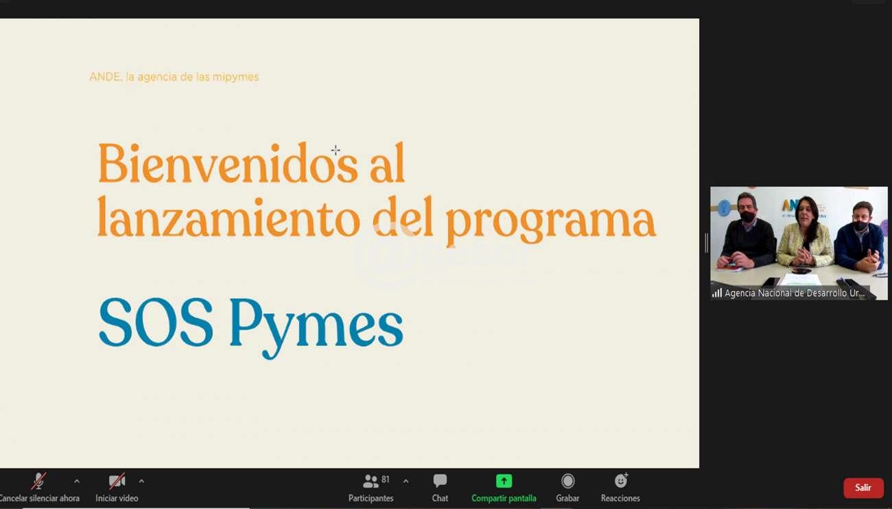 El lanzamiento se realizó de manera virtual con la participación del Directorio de ANDE integrado por su presidenta Carmen Sánchez y los directores Martín Ambrosi y Federico Perdomo. La presentación del programa la realizaron los gerentes de Desarrollo Empresarial Sebastián Ruiz, de Emprendimientos Amalia Quirici y de Acceso al Financiamiento Mercedes Gracia. En la oportunidad, la presidenta de ANDE Carmen Sánchez aseguró que este programa “surgió de las propias necesidades de las empresas. Es necesario adaptarse a las demandas y desde la Agencia nos adecuamos a ello. Con la actual situación, saliendo de la pandemia, las empresas necesitan trabajar en nuevos modelos de negocios. Estamos muy confiados con este instrumento y creemos que el diseño que le dimos responde a las necesidades de la mayoría de las empresas, que nos han trasladado sus inquietudes”.
