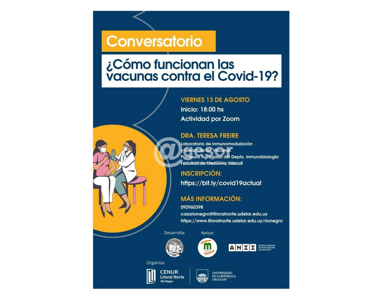 El Consejo Asesor de la Casa de la Universidad de Río Negro, ha venido siguiendo con atención el impacto de la emergencia sanitaria en el departamento, en el país y en la región. Entre otras iniciativas, ha definido la realización de un ciclo de actividades abiertas al público en general, orientadas a favorecer el acceso de la población a información relevante y de calidad acerca de la pandemia. En esta ocasión se realizará un conversatorio cuya pregunta eje es ¿cómo funcionan las vacunas contra Covid-19?