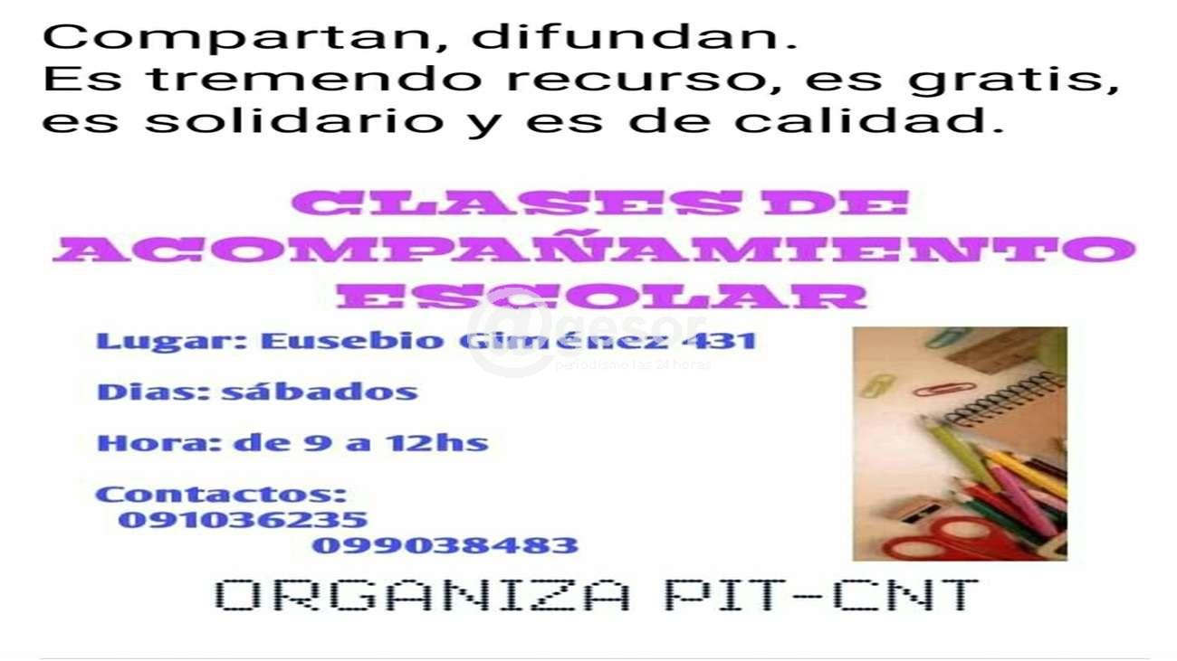 El Plenario Intersindical de Soriano promueve clases gratuitas de acompañamiento escolar. Una actividad que se lleva adelante todos los sábados en su sede social.