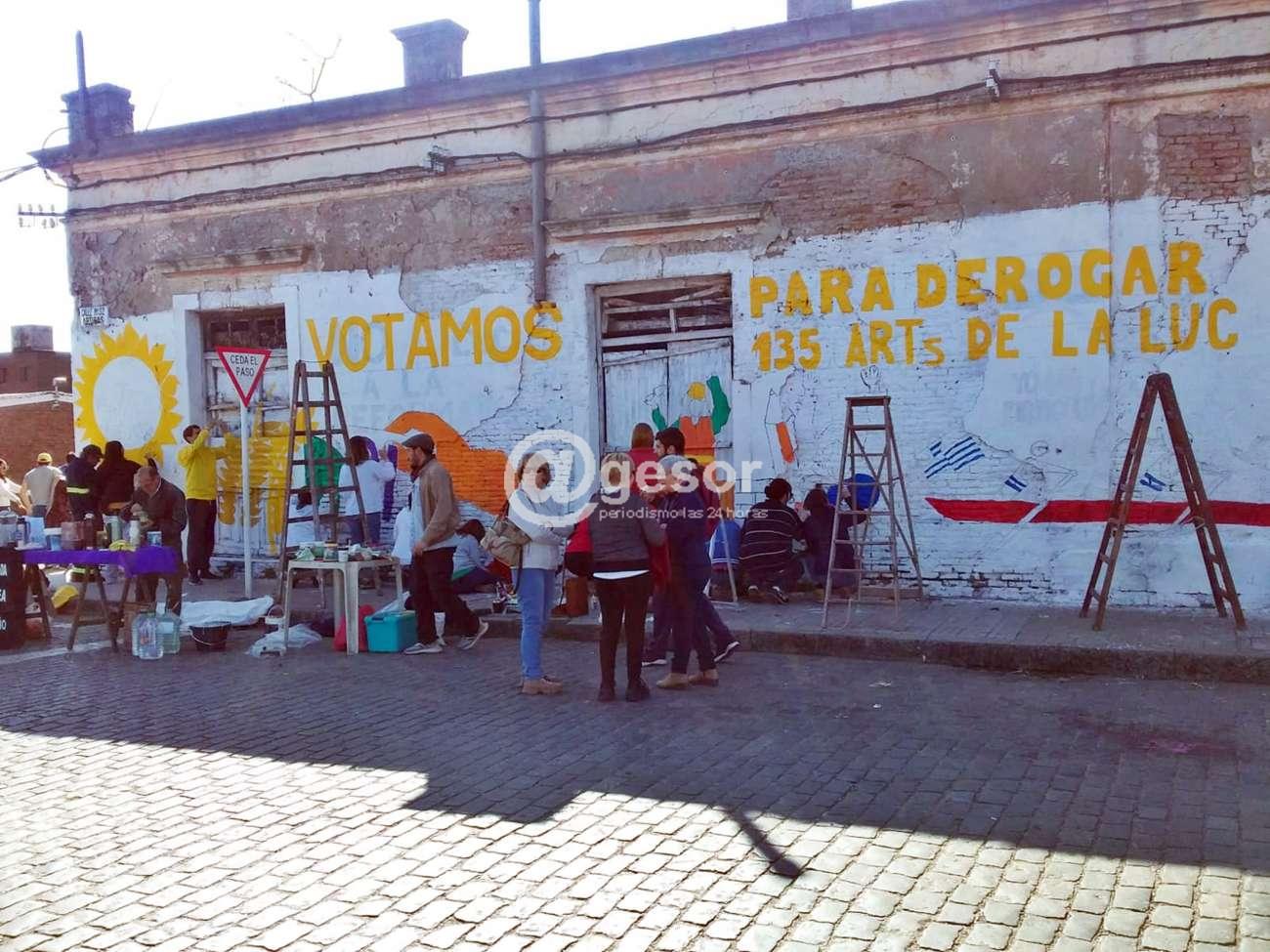 Mientras la Corte Electoral continúa con el proceso de validación de firmas para determinar la convocatoria, en caso de alcanzarse el porcentaje establecido por la ley para llamar a referéndum con la finalidad de poner a consideración de la población 135 de la Ley de Urgente Consideración (LUC), militantes del Frente Amplio, entre ellos integrantes de la Brigada Idea Vilariño, pintan los muros de la añosa finca de Casagrande y Artigas en Mercedes, llamando a votar SI por la derogación de los mencionados artículos.
