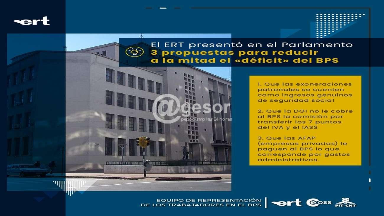 Por este motivo, y a los efectos de aportar mayor transparencia y obtener una real dimensión de la salud financiera del BPS, es que el Equipo de Representación de los Trabajadores (ERT) presentó en la Comisión de Presupuesto de la Cámara de Diputados una seria de propuestas, las cuales adjuntamos para su conocimiento”.
