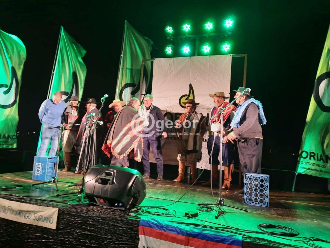 En el marco del 1er. Encuentro nacional de Payadores realizado este sábado en el Hipódromo Viera y Benavídez de Mercedes, el intendente de Soriano, Guillermo Besozzi entregó reconocimientos a destacados exponentes de este género tradicionalista.