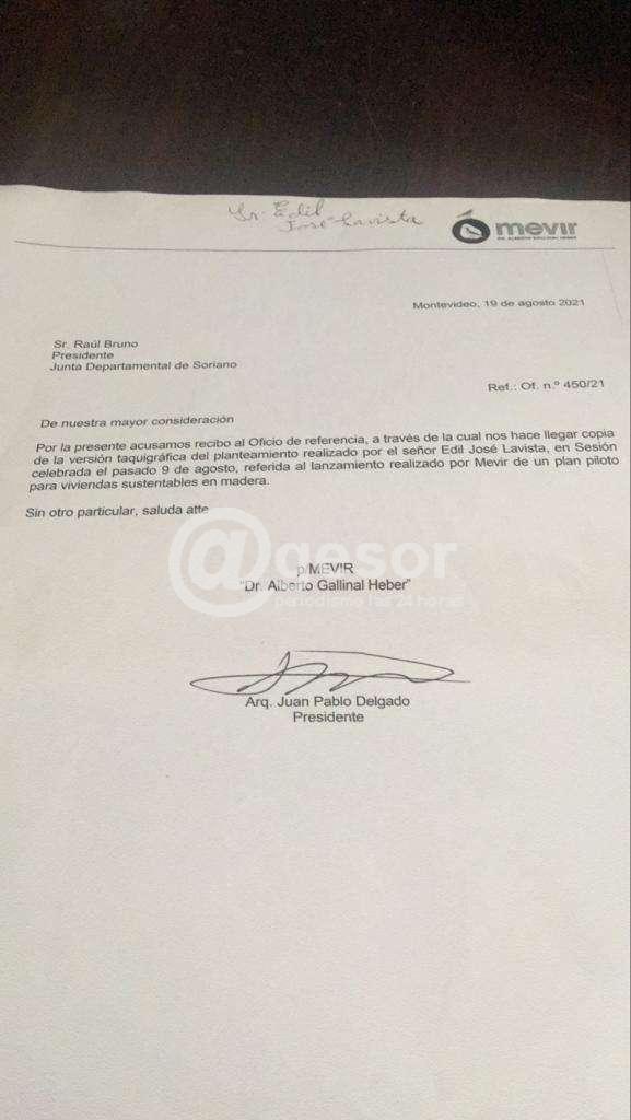 Ya recibimos respuesta del presidente de Mevir, Juan Pablo Delgado, a esa carta que presentamos, lo que nos deja muy esperanzados de poder desarrollar ese plan piloto en el departamento, de construcción de casas de madera.