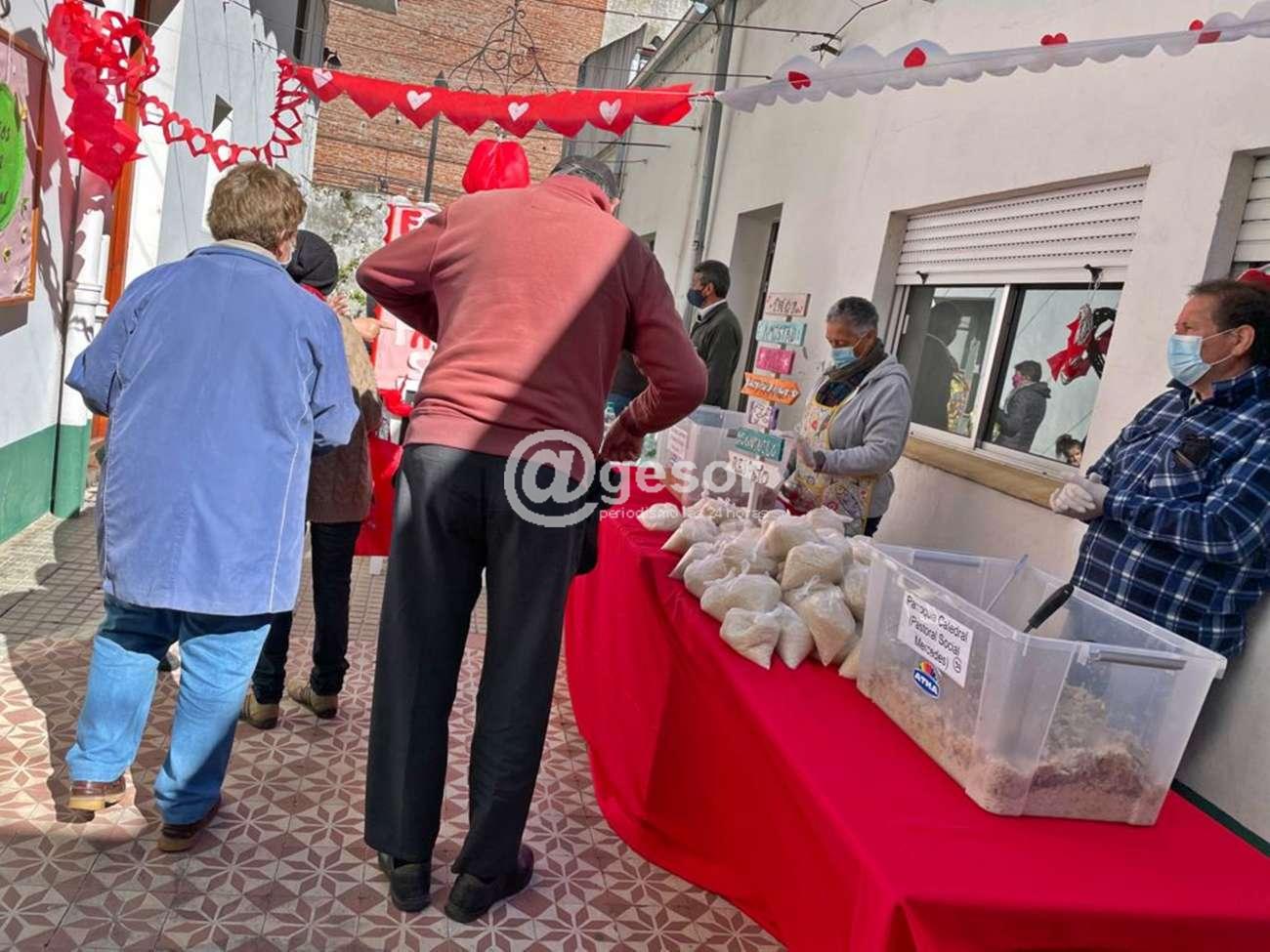Este martes en patio de la Catedral Nuestra Señora de las Mercedes, a través de la Pastoral Social, se distribuyeron las 250 porciones del mega strogonoff solidario enviadas por la Fundación Corazoncitos que a nivel nacional colaboró con 30 merenderos entre ellos la obra que realiza la Pastoral Social con familias carenciadas que recibieron esta asistencia.
