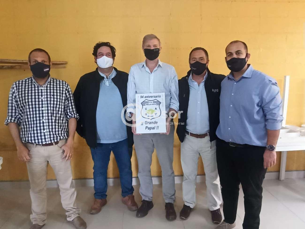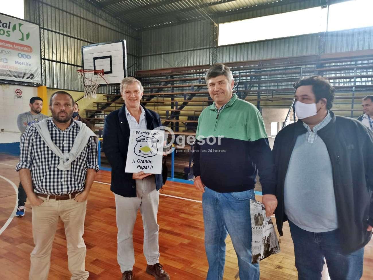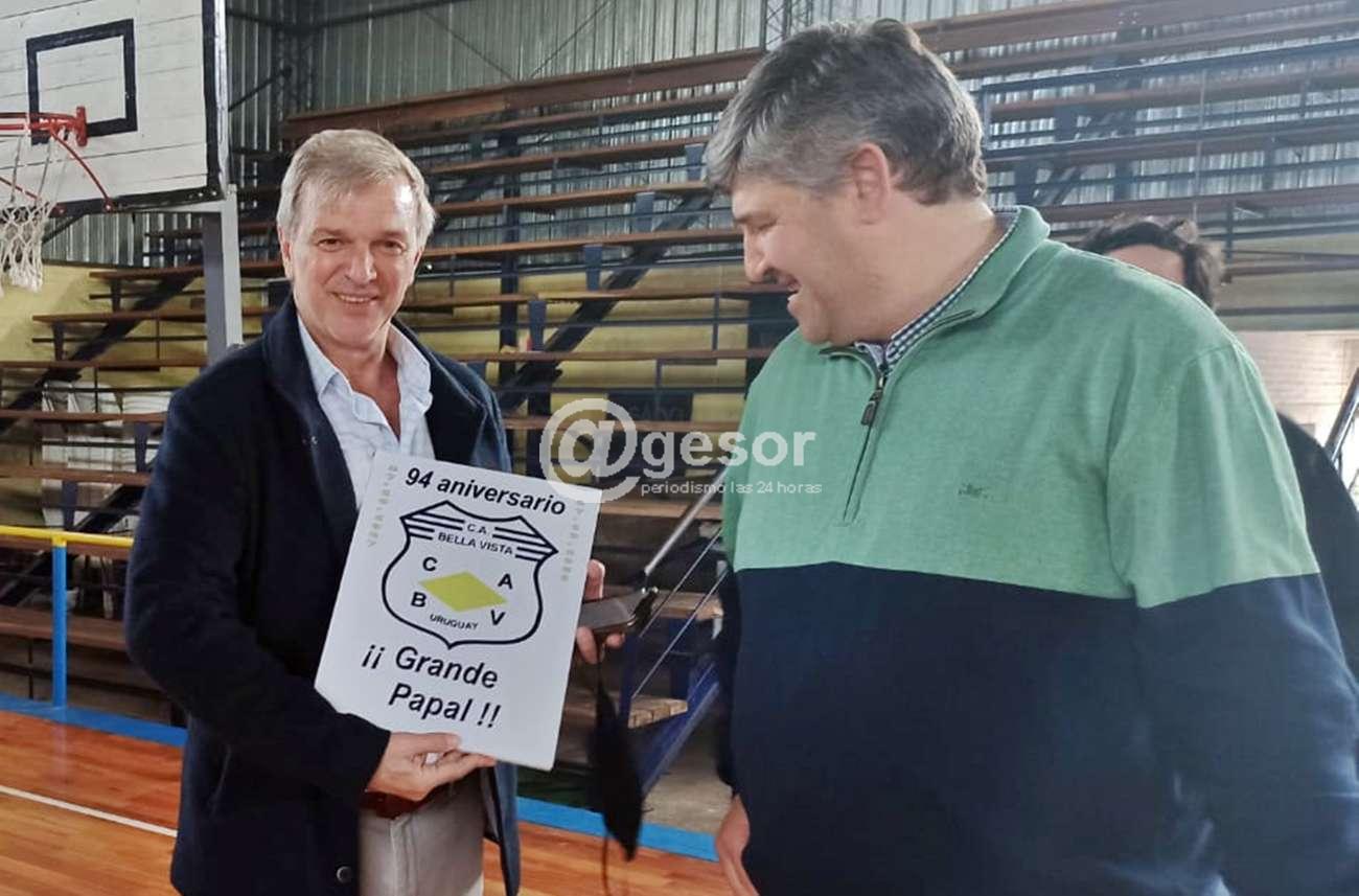 Recorrió las instalaciones del club y en el gimnasio le entregó una plaqueta en la que tiene el escudo del Club A. Bella Vista 94 aniversario y culmina con la frase ¡¡Grande Papal!!