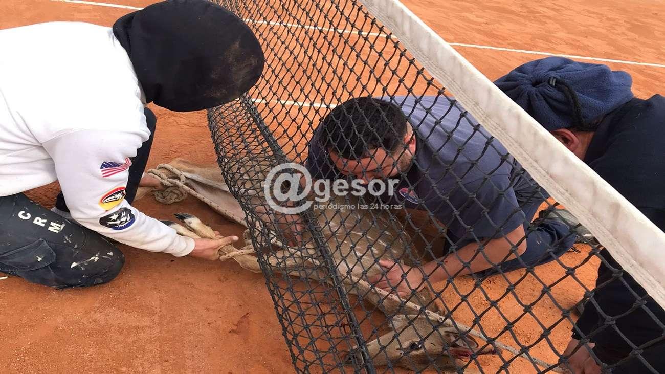 En paraje Asencio liberaron a uno de los ciervos que encontraron en la  una de las canchas de tenis del Club de Remeros Mercedes.