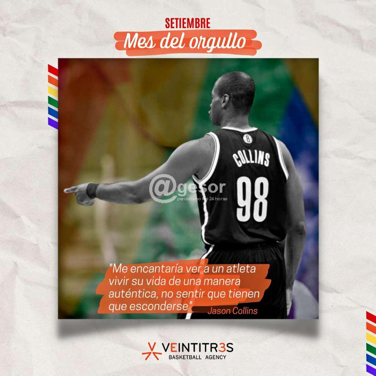Seleccionamos esta frase y esta imagen de Jason Collins con una camiseta en homenaje a Matthew Shepard, un estudiante universitario homosexual que fue asesinado en 1998 por su orientación sexual, porque creemos que sintetiza el espíritu de lo que este mes significa para quienes formamos parte de Veintitrés.