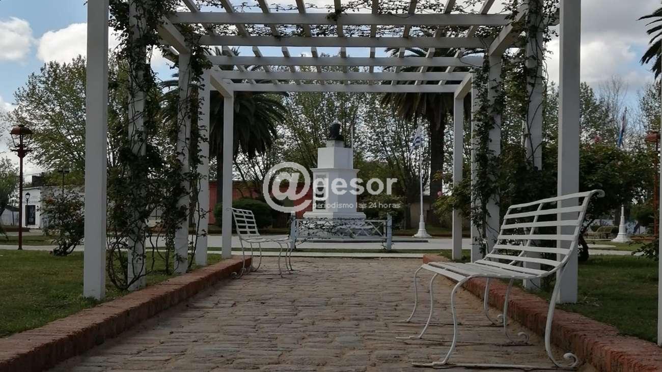 En la plaza “Artigas” se colocan adoquines en las veredas situadas bajo las pérgolas que fueron instaladas anteriormente en dicho paseo público.