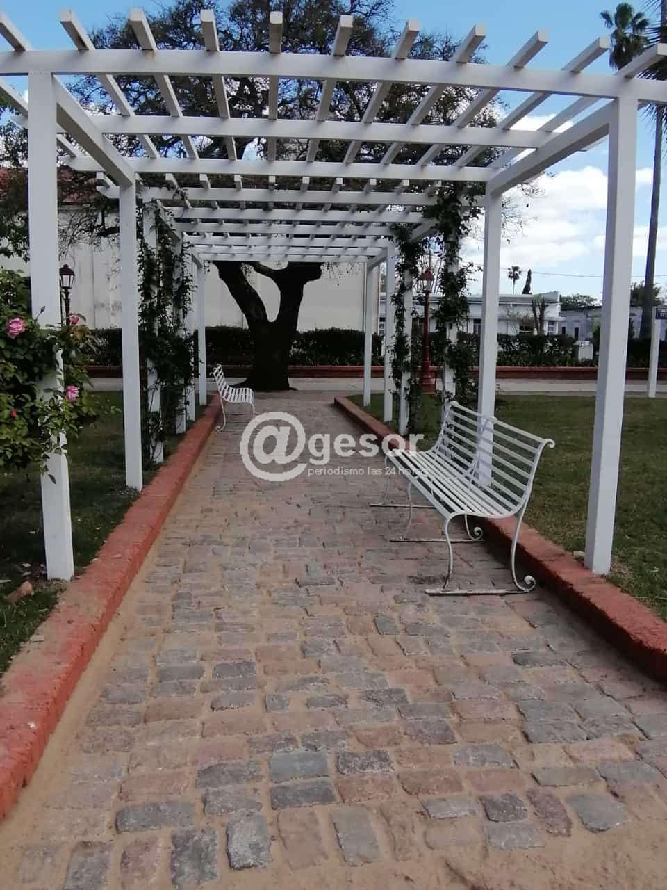 Colocaron adoquines en las veredas situadas bajo las pérgolas que fueron instaladas anteriormente en dicho paseo público.