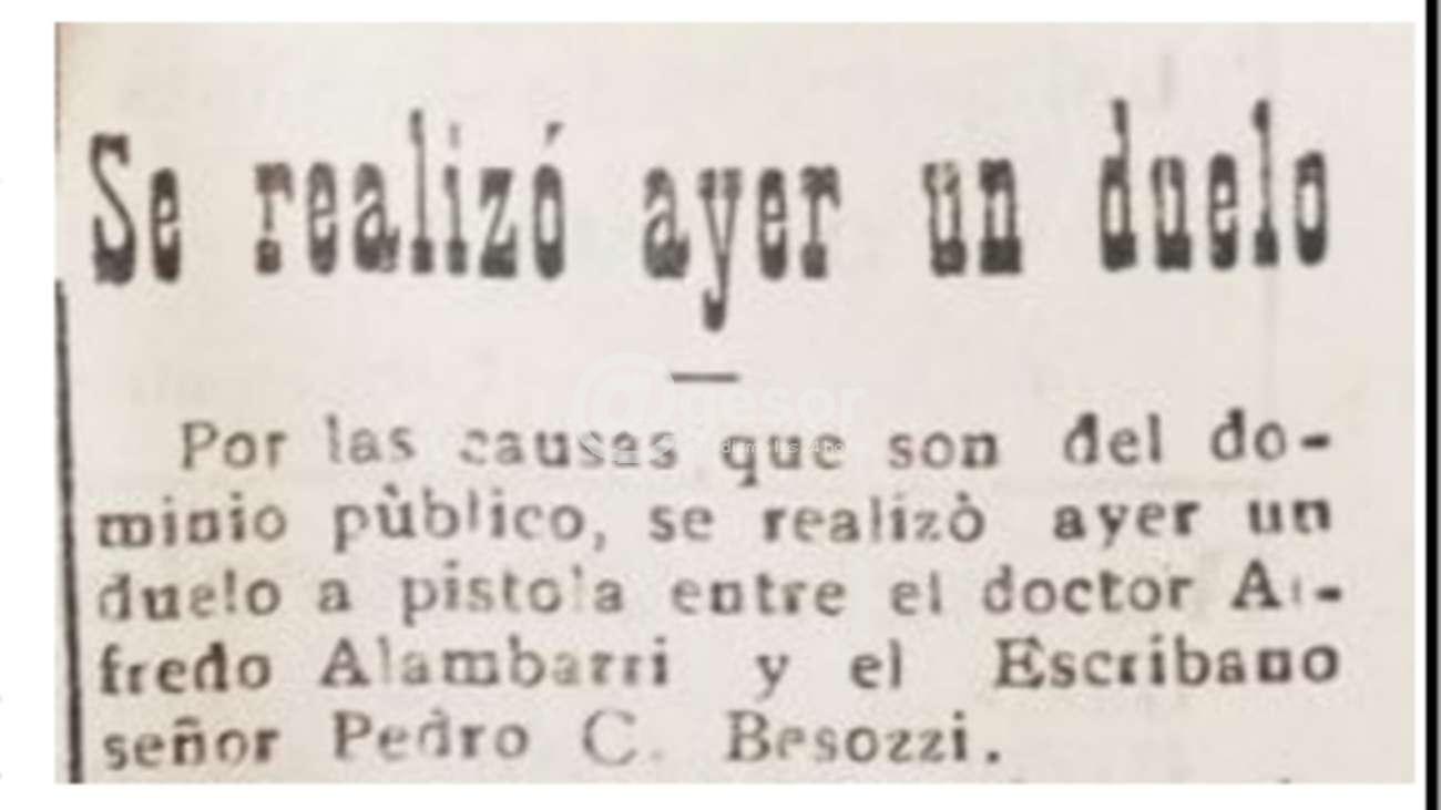 En esta publicación “sacaremos del olvido” el duelo a pistola entre el doctor Alfredo Alambarri y el escribano Pedro Besozzi.