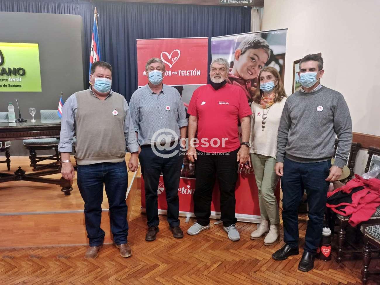 En salón de actos "Eduardo Víctor Haedo" de la Intendencia de Soriano, en actividad encabezada por el jefe comunal Guillermo Besozzi, acompañado por el Director de Acción Social y Familia, Fulvio Duarte, el Coordinador de dicho área Dr. Wilde Lapido, quienes recibieron a representantes de Teletón Cristina García y Gustavo Brea.