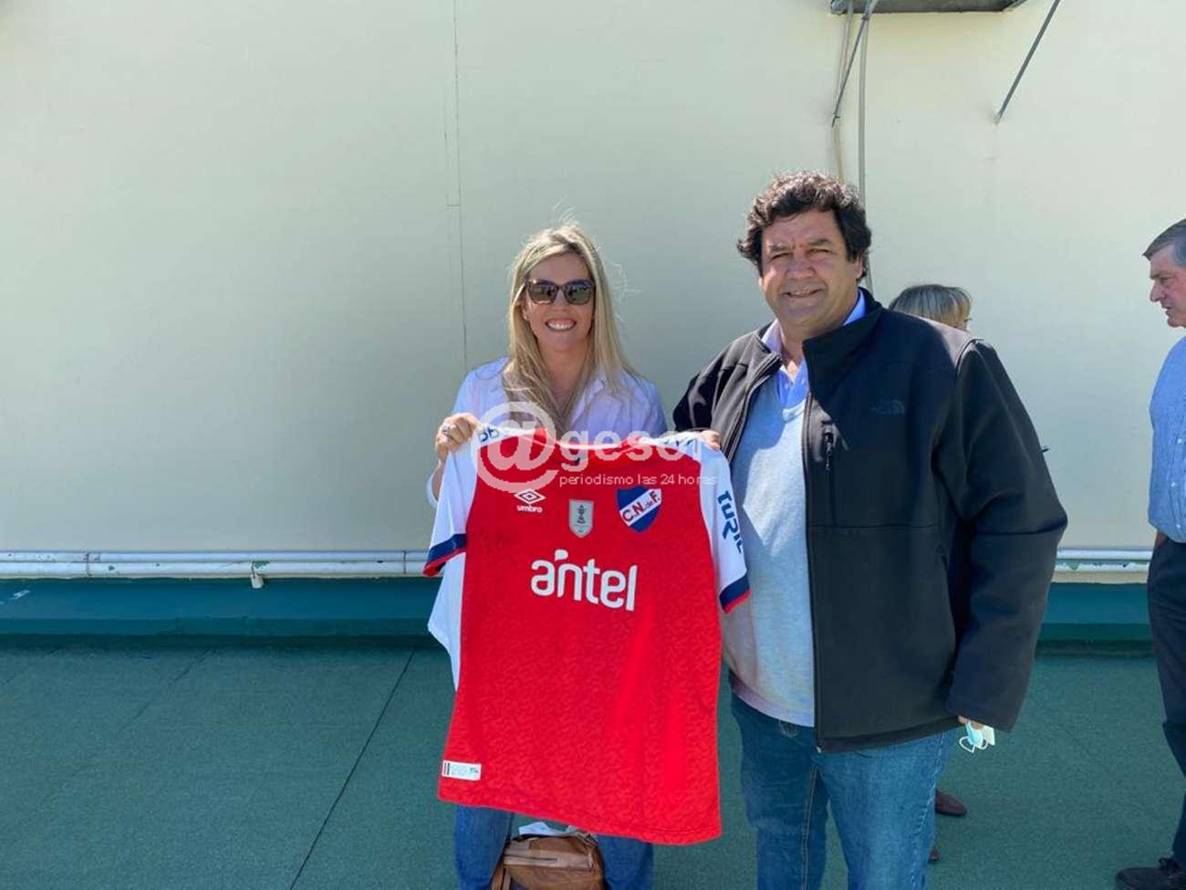En la foto el edil José Lavista hace entrega y agradece al jugador y capitán de Nacional, Diego Polenta; por enviar una camiseta firmada para ser subastada a beneficio de recaudar fondos para la Asociación Civil que comprará el tomógrafo. Agradecemos la gentileza del jugador Diego Polenta.