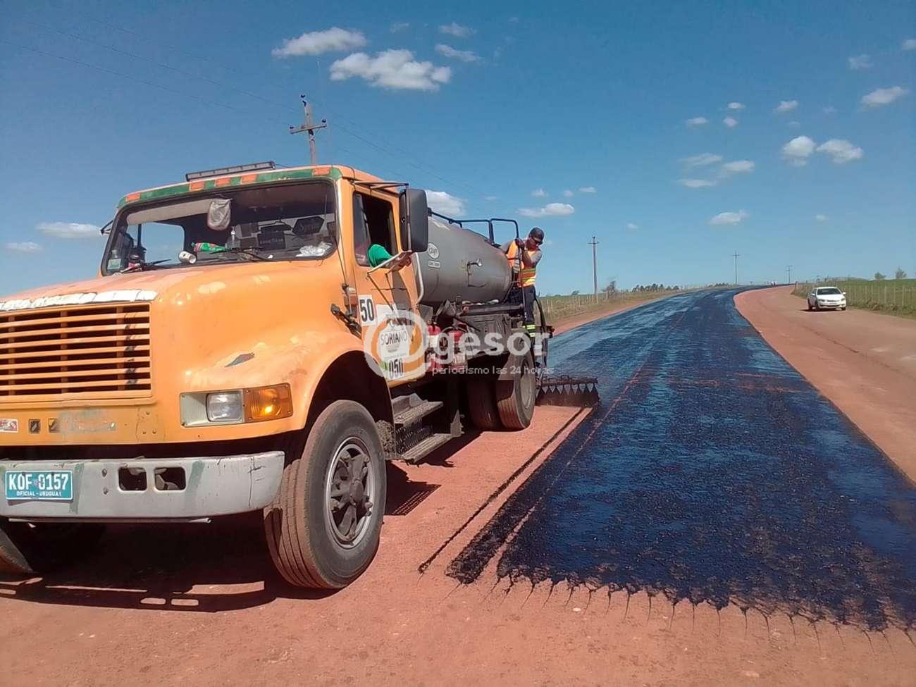 Este martes la Intendencia de Soriano comenzó a aplicar la imprimación asfáltica en el camino “Roque P. Gil” que va de ruta 14 hasta pueblo Sacachispas.
