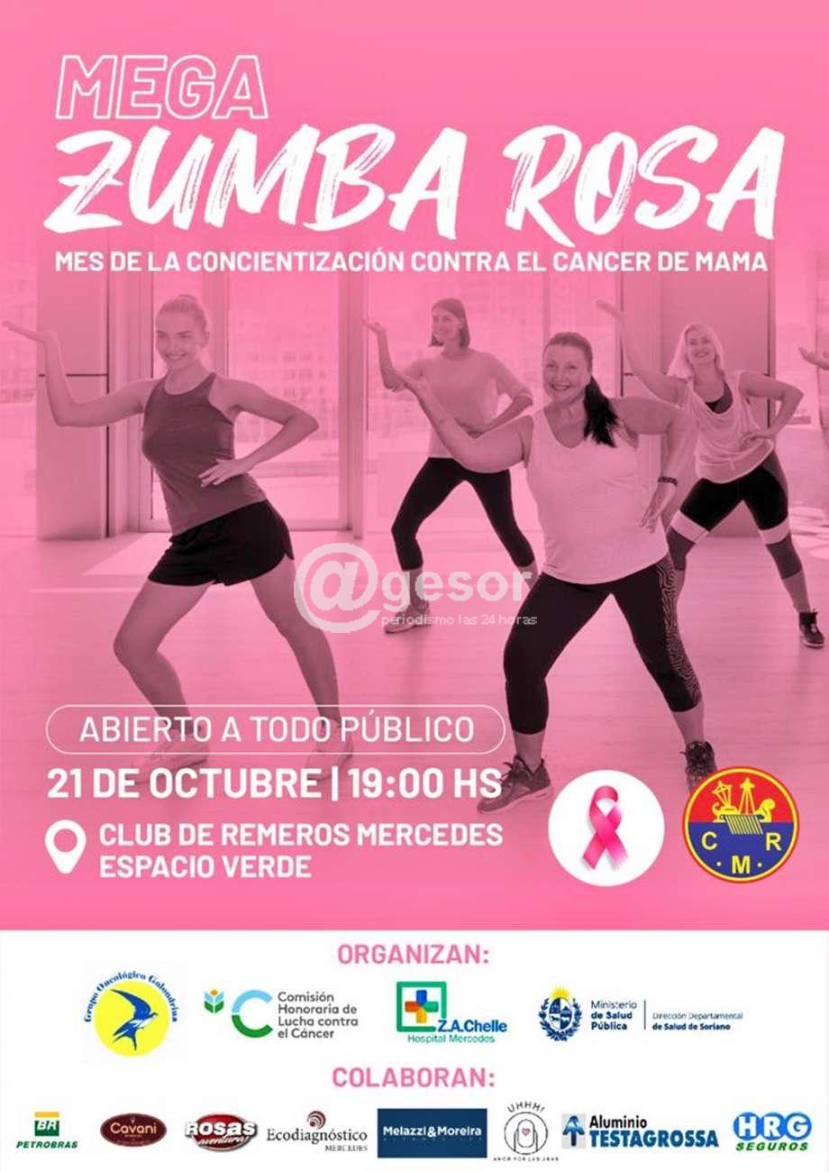 Este jueves a las 19.00 horas en el Mes de la Concientización contra el Cáncer de Mama, Mega ¨Zumba Rosa¨ en Club Remeros Mercedes.