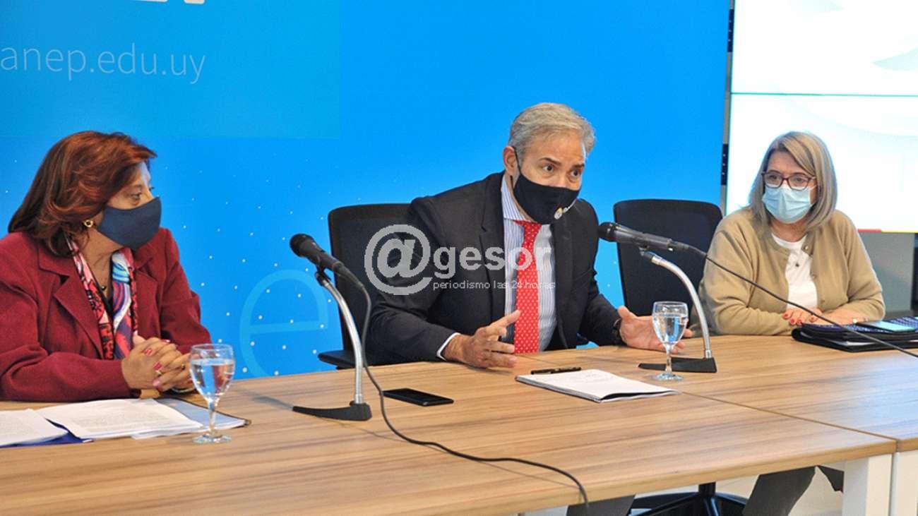 La presentación de la hoja de ruta para afrontar situaciones de violencia en el ámbito educativo se efectuó este miércoles 20 en la sede de la ANEP. Asistieron el presidente del Codicen, Robert Silva; la directora general de Educación Inicial y Primaria, Graciela Fabeyro, y la directora de Derechos Humanos de la ANEP, Gloria Canclini.