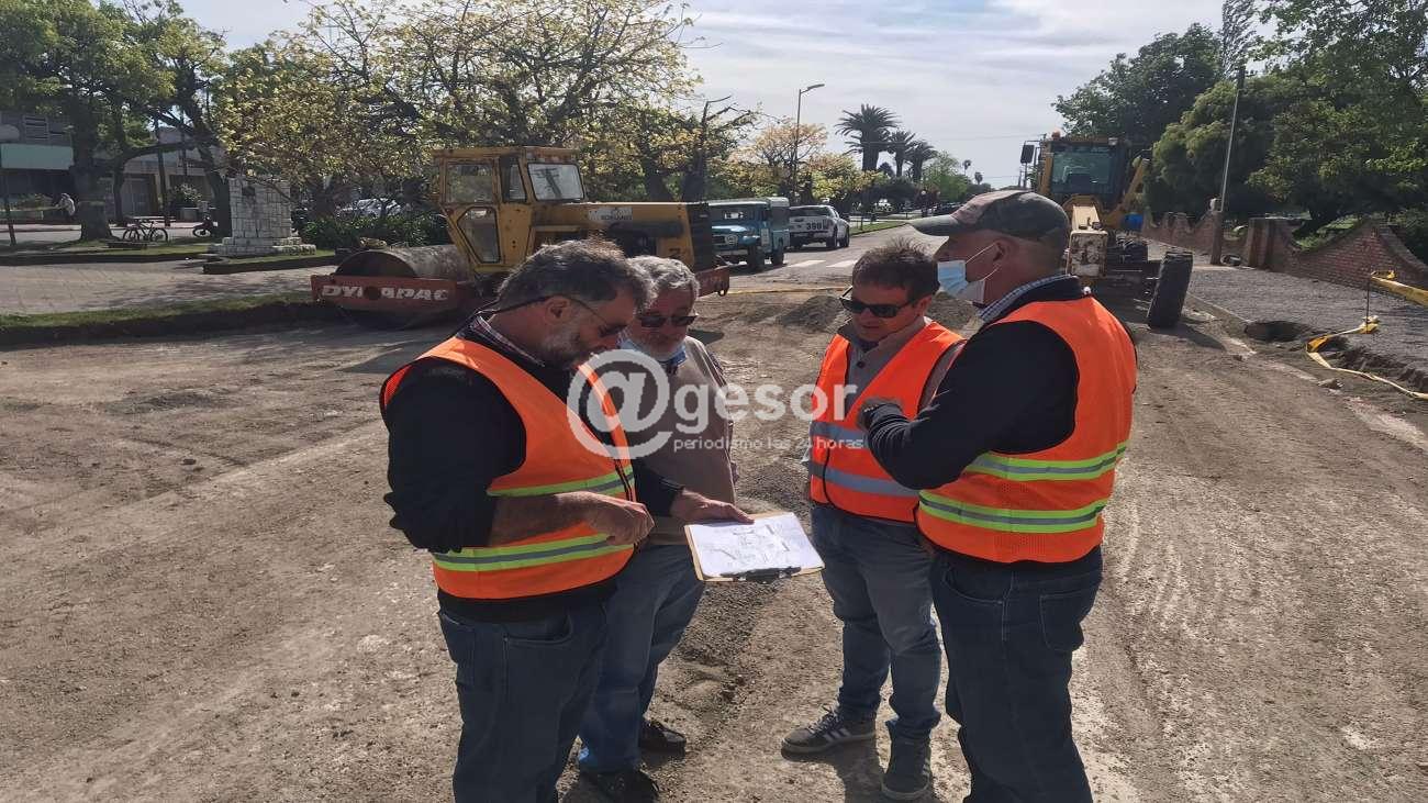 La oportunidad fue propicia para ver los trabajos que se vienen desarrollando en la rotonda del obelisco, donde evaluaron el avance de los mismos.