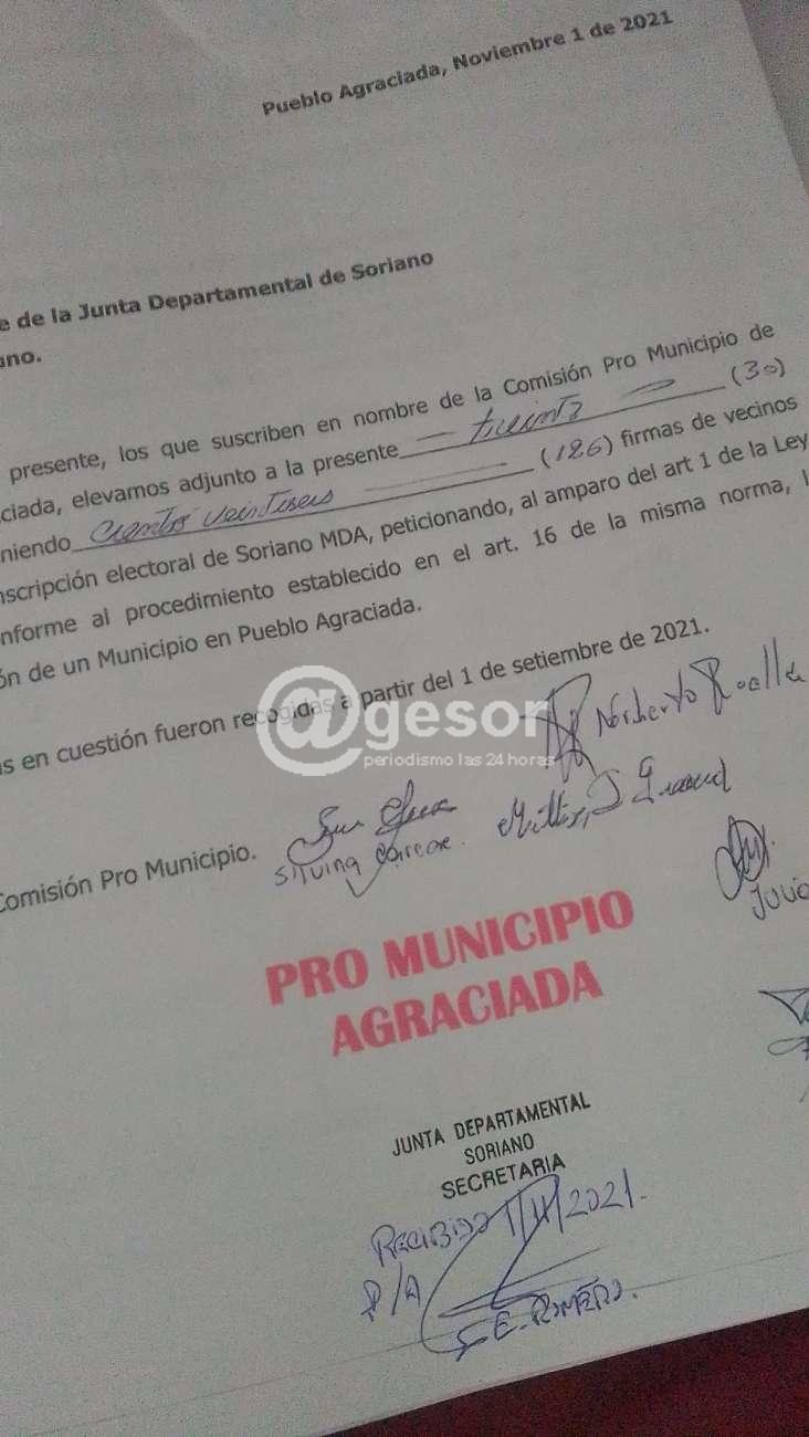 Acompañamos a la ´Comisión Pro Municipio de Agraciada a la entrega de las firmas que dan arranque al proceso legal de conformación del Municipio. Lo hicimos en representación de Norberto Ruella y Silvina Careac dirigentes de nuestra agrupación en Agraciada que integraron el movimiento.