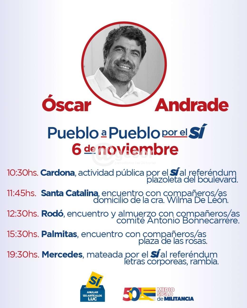 El sábado en la mañana estará en las localidades de Cardona, Santa Catalina y Rodó, mientras que por la tarde lo hará en Palmitas, culminando con una actividad pública en la ciudad de Mercedes, en el espacio ubicado junto a las letras corpóreas de la rambla mercedaria. El domingo mientras tanto, visitará la ciudad de Dolores, culminando la gira por el SÍ, en la localidad de Villa Soriano.