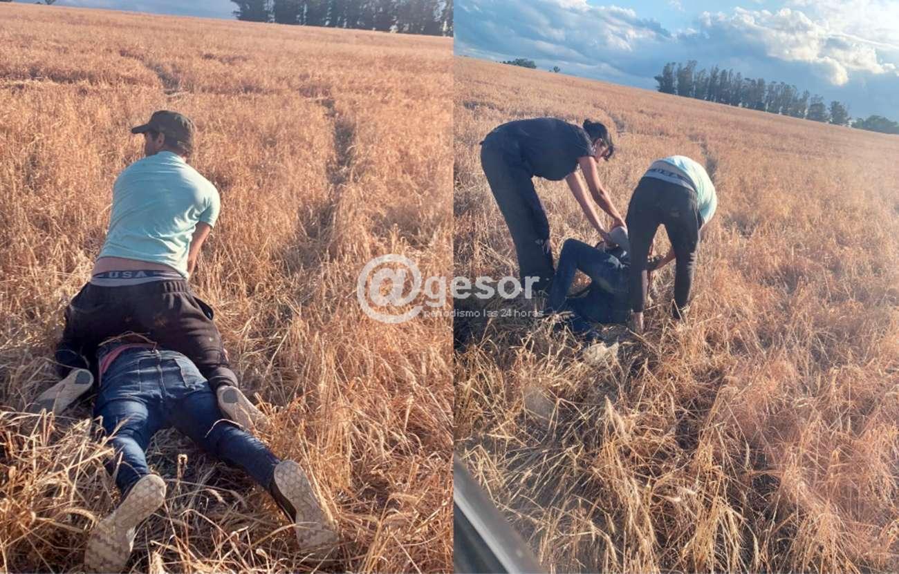 La fotografía muestra el momento en que fue detenido Ruben Leonel Ramón Díaz en pleno campo hacia donde había escapado