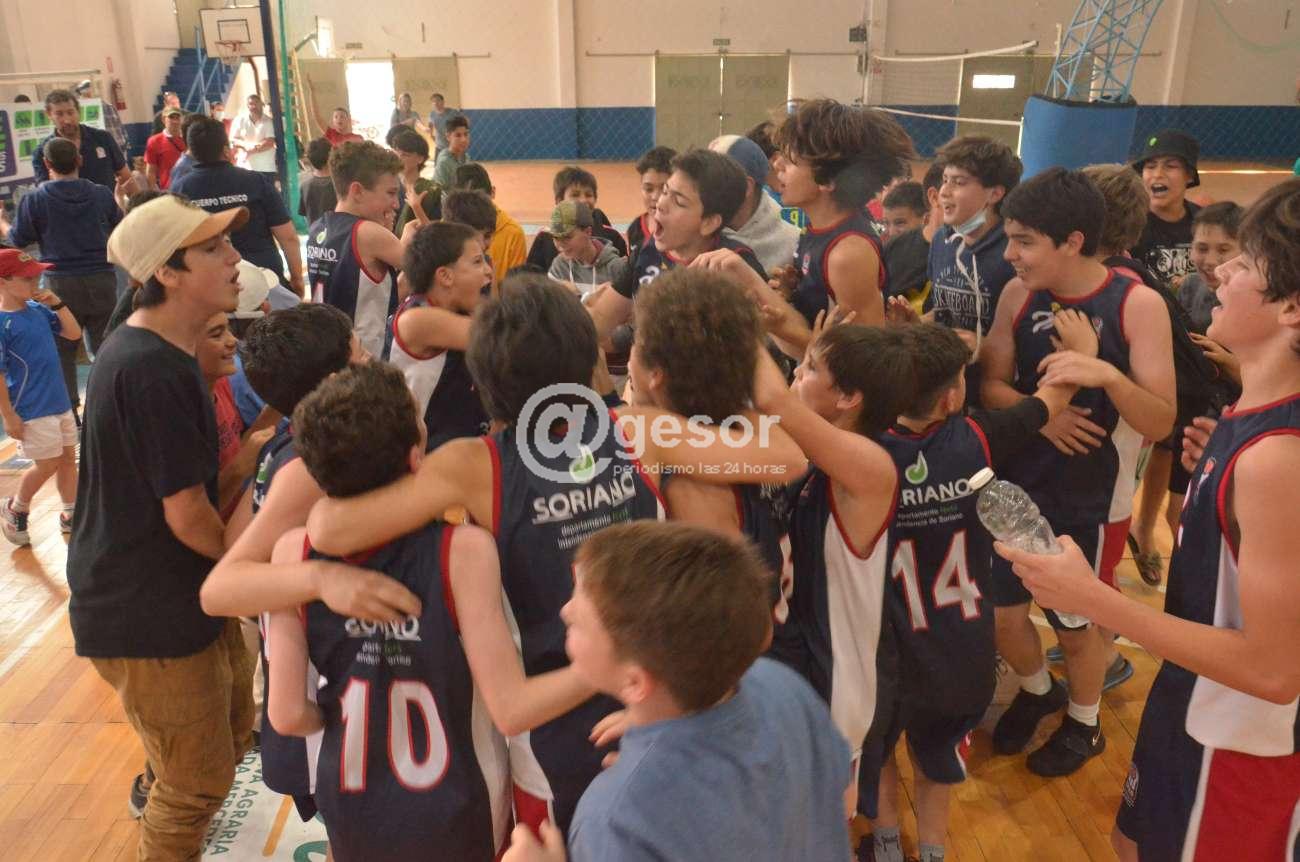 En el gimnasio "Alberto Della Santa", la Selección U13 de Soriano con la conducción técnica de Nicolás Barrera y Agustín Premazzi se consagró en forma anticipada Campeón del Litoral al vencer en el primer encuentro de la tarde de este sábado a su similar a Paysandú en forma ajustada en las cifras de 75 a 73, en un encuentro que tuvo alternativas cambiantes, especialmente en los primeros tramos donde los sanduceros estuvieron arriba en el tanteador y que siempre se mantuvo dentro de cierta paridad, aunque los locales en el complemento habían logrado tener unos puntos de diferencia que le permitieron alcanzar en forma ajustada el triunfo y con ello la consagración anticipada, ya que aun les resta jugar con Salto en esta misma tarde de sábado y luego también deben jugar naranjeros y sanduceros.