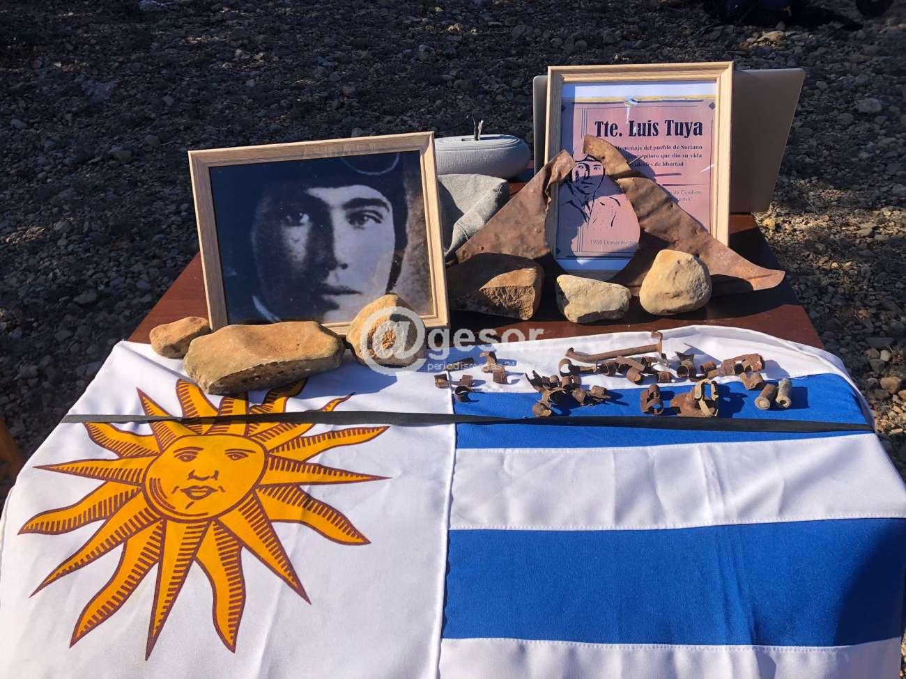 Partes metálicas del Polikarpov I 15 que pilotaba Tuya fueron hallados por el equipo encabezado por el mercedario Federico Marotta, quien en contacto con investigadores españoles y con vecinos de la localidad de Celadas, tras un paciente trabajo de recopilación de datos, pudieron dar con el lugar donde cayó la aeronave, en forma especial por el relato de Antonio Guillén Gómez "Rosino", testigo del hecho en 1937.