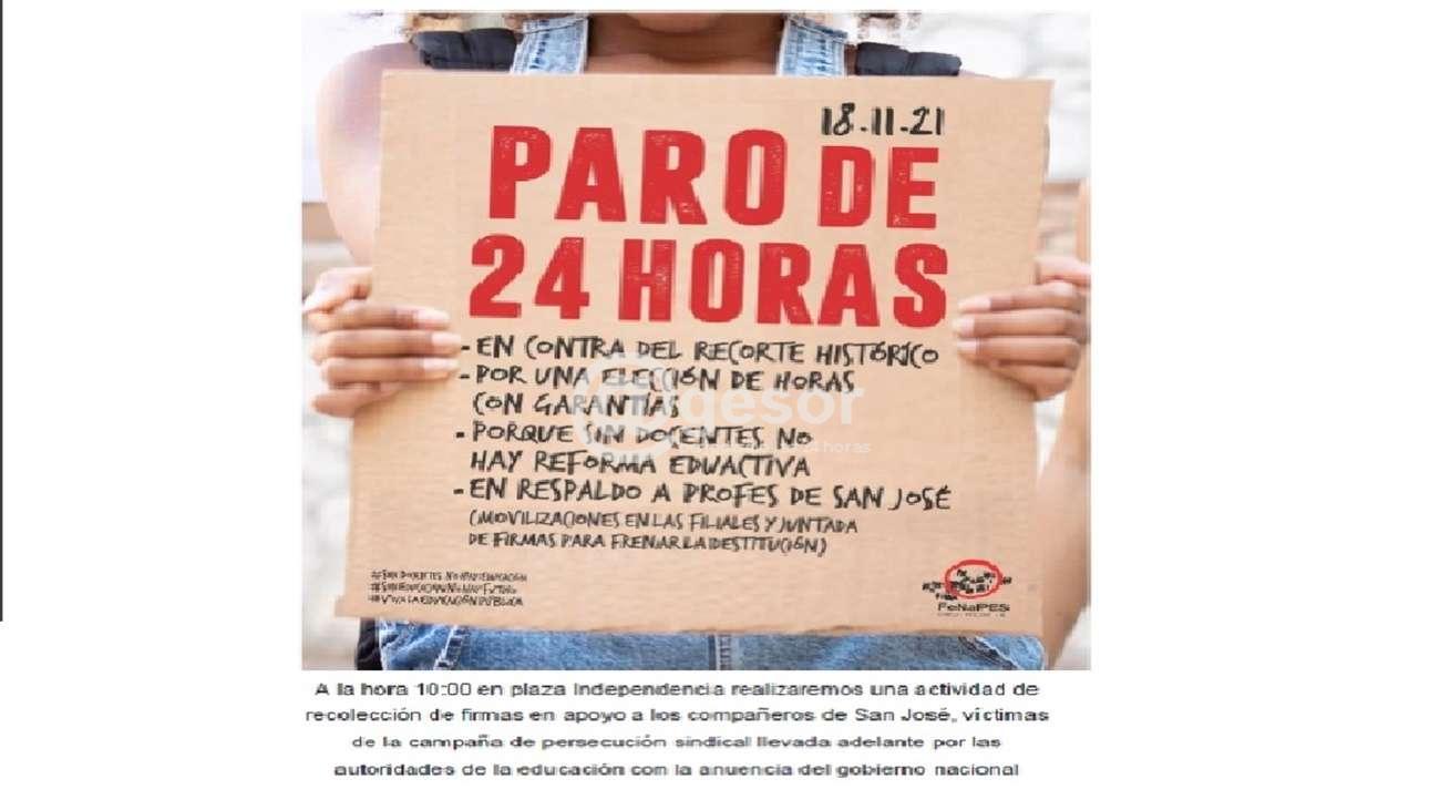 AFESSOR (Asociación de Funcionarios de Enseñanza Secundaria de Soriano) convoca al paro decretaro por la FENAPES para este jueves 18 de noviembre.