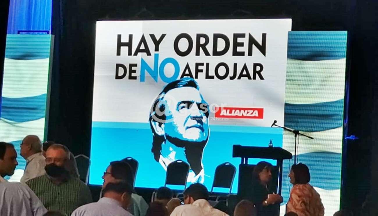Se preguntó ante esta convocatoria de Alianza Nacional que muchos pusieron énfasis es la primera sin su líder històrico, fundacional, "¿quién dijo que no tenemos líder? Está aquí, siempre con cada uno de nosotros si ustedes están acá están concientes que está con nosotros. Me decía hace un rato Besozzi, hacer el camino y pensar que lo voy a encontrar y darme cuenta que no, pero nos encontramos nosotros que tenemos la obligación de mostrar o demostrar que somos Alianza. A mi no me sale con ese vozarrón y esa fuerza que él tenía, yo tengo cuerdas vocales de profesora veterana, ya bastante gastada, gracias al micrófono me pueden escuchar, si no, nada. Pero seguro que ustedes serán una caja de amplificación inmensa, seguro que con fuerza usstedes me ayudan a decir que somos Jorge Larrañaga, somos orgullosamente blancos y somos Alianza Nacional".