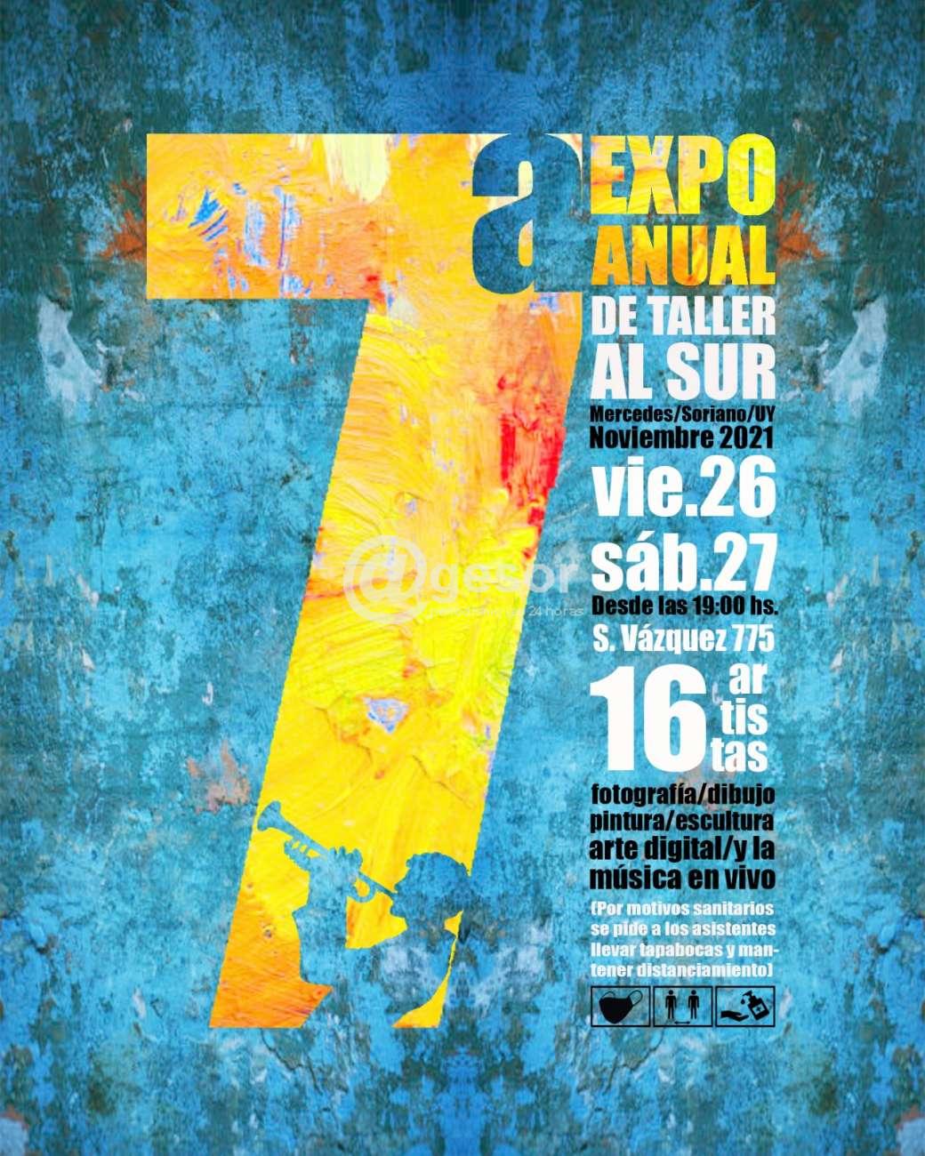El viernes 26 y sábado 27 de noviembre, a partir de las 19 horas se realizará la 7ma. Muestra anual de Taller al Sur, dirigido por el prof. Ariel Galain. Como ya es una costumbre, será un evento abierto a todo público donde confluyen diferentes disciplinas artísticas: fotografías, dibujos, pintura, escultura, arte digital. Sumado a espectáculos musicales y un homenaje a Gastón “Dino” Ciarlo.
