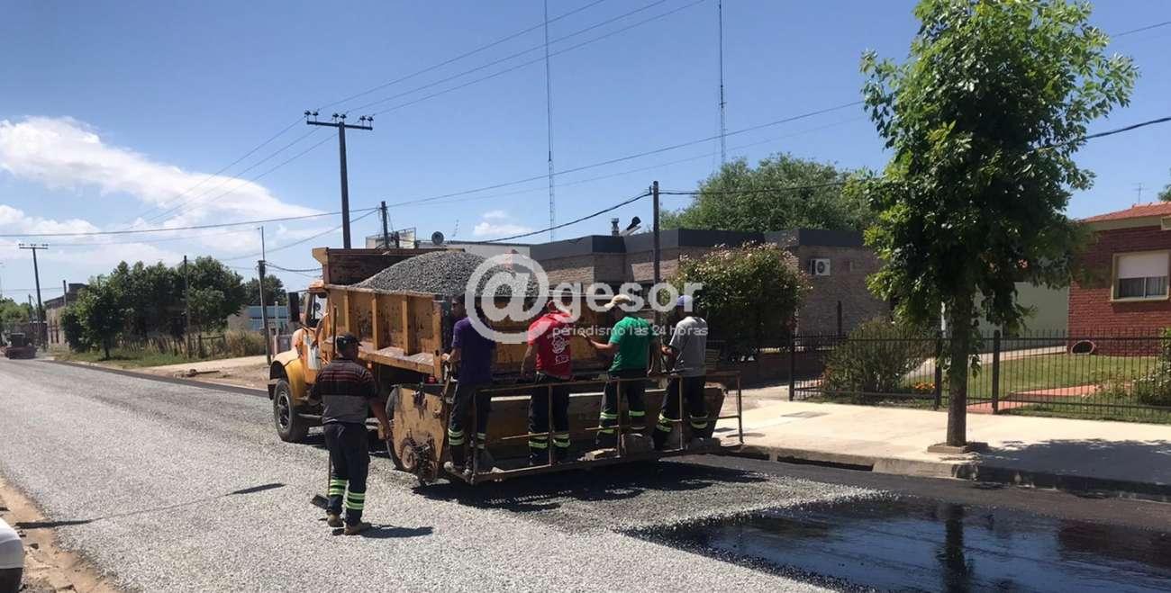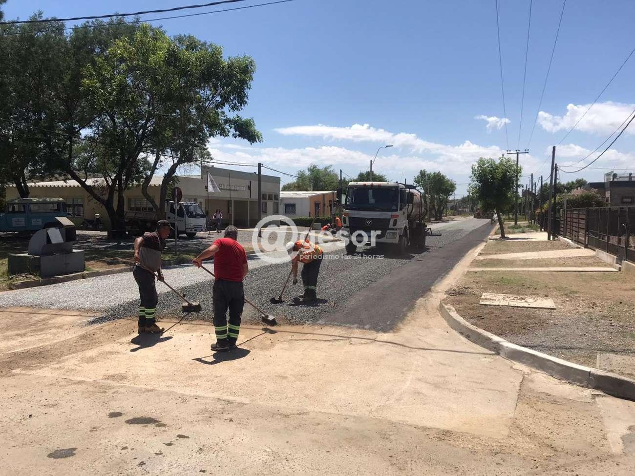Cabe indicar que al momento se han completado 5 cuadras con el primer riego bituminoso, mientras se soigue con la intervención en otras vías de tránsito.