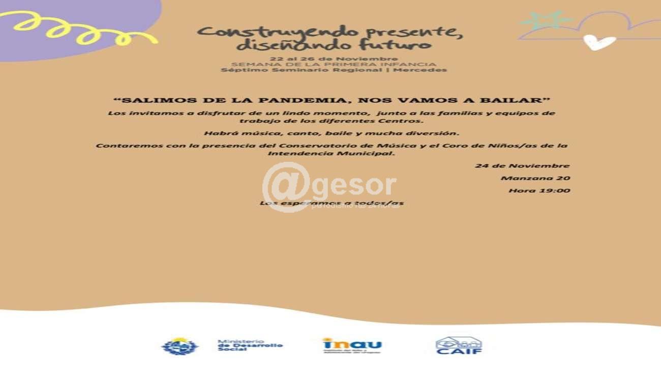En el marco del 7° seminario regional de Primera Infancia que viene desarrollándose en Mercedes se realiza una actividad en Manzana 20. La misma se denomina “salimos de la pandemia, nos vamos a bailar”, habrá música, canto, baile y mucha diversión. Contándose con la participación del Conservatorio municipal de Música y el Coro de Niños/as municipal.