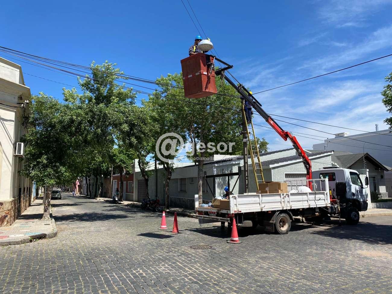 En Villa Soriano, se recambian 200 luminarias, mientras que en Mercedes actualmente se están sustituyendo las denominadas catenarias, o sea aquellos focos que se sostienen con lingas en las intersecciones de calles.