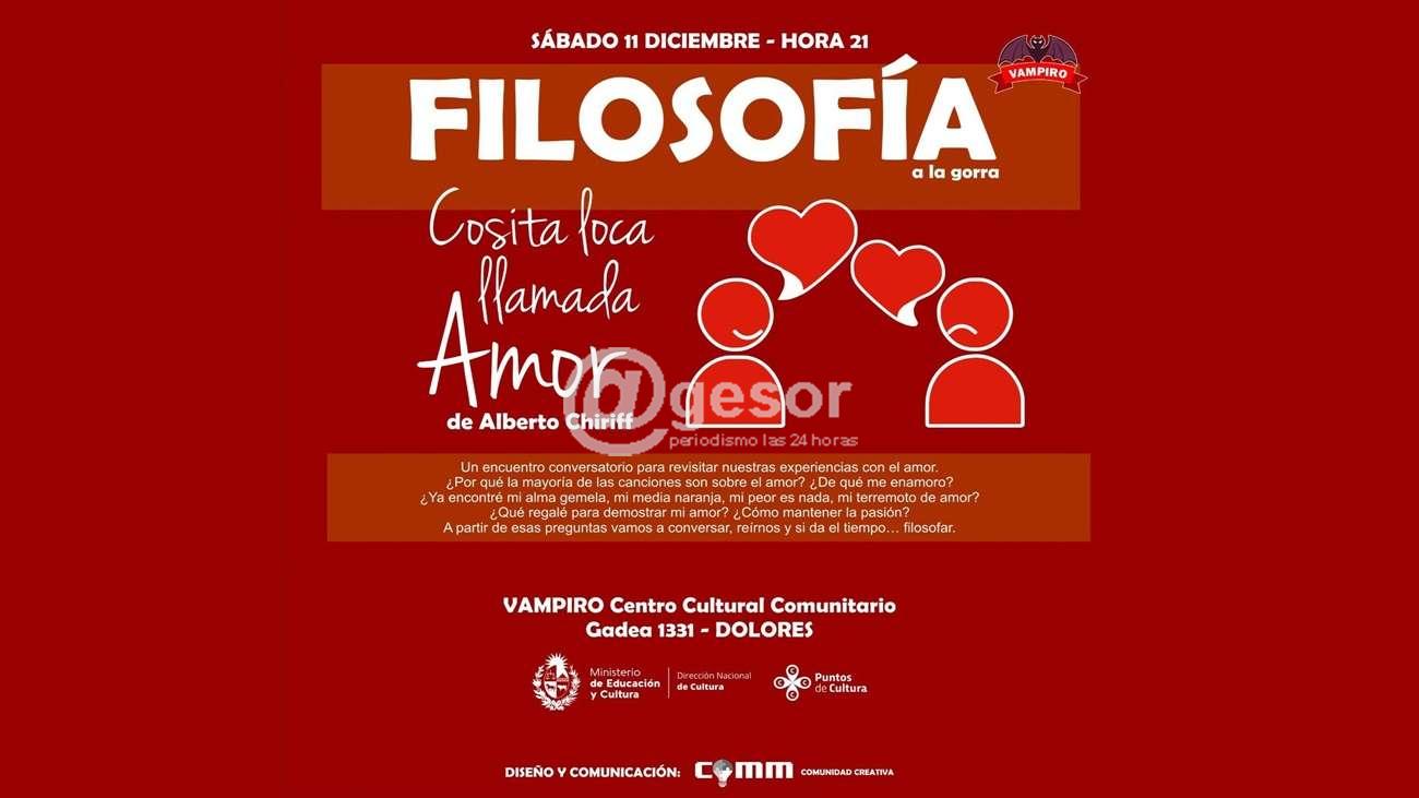En Vampiro, Centro Cultural Comunitario (Gadea 1331, Dolores) se desarrollará una interesante actividad: Filosofía a la gorra, bajo el tema Cosita loca llamada amor. La misma estará a cargo de Alberto Chiriff.