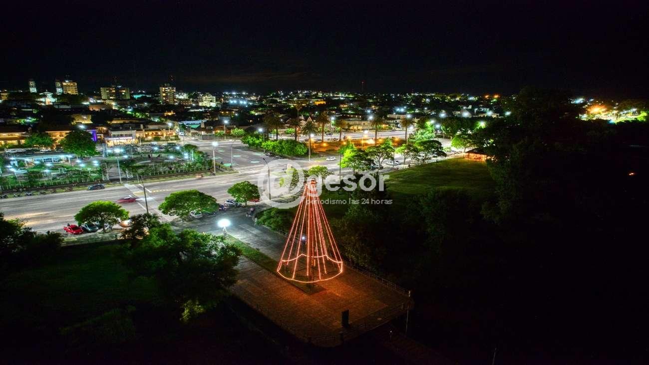 Decenas de personas pasan por la noche para tomarse fotografías junto al árbol.