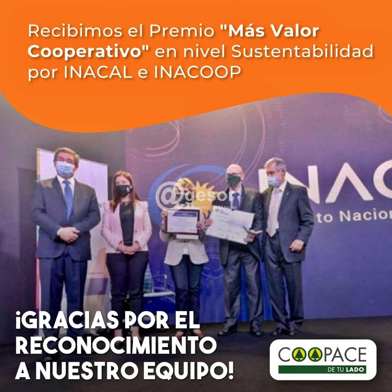 Coopace fue distinguido con el Premio "Más Valor Cooperativo" en nivel Sustentabilidad.