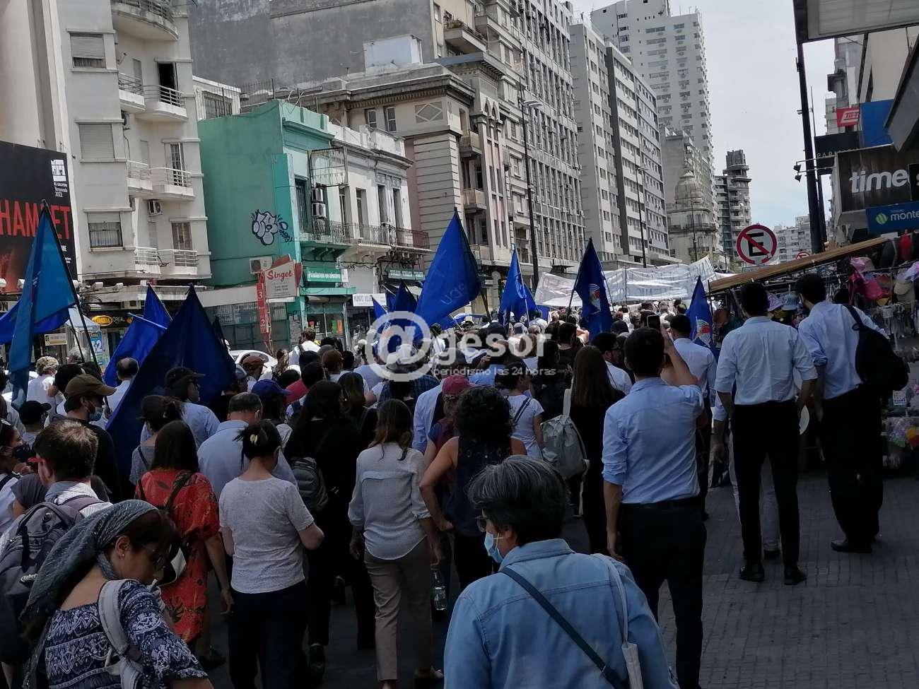 (@gesor en Montevideo) Trabajadores de la banca oficial se movilizaron por el centro de Montevideo. Desde la sucursal 19 de Abril en 18 de julio Entre Magallanes y Minas en Montevideo, los trabajadores de la banca oficial realizaron una marcha que llegó hasta el frente de Presidencia de la República.