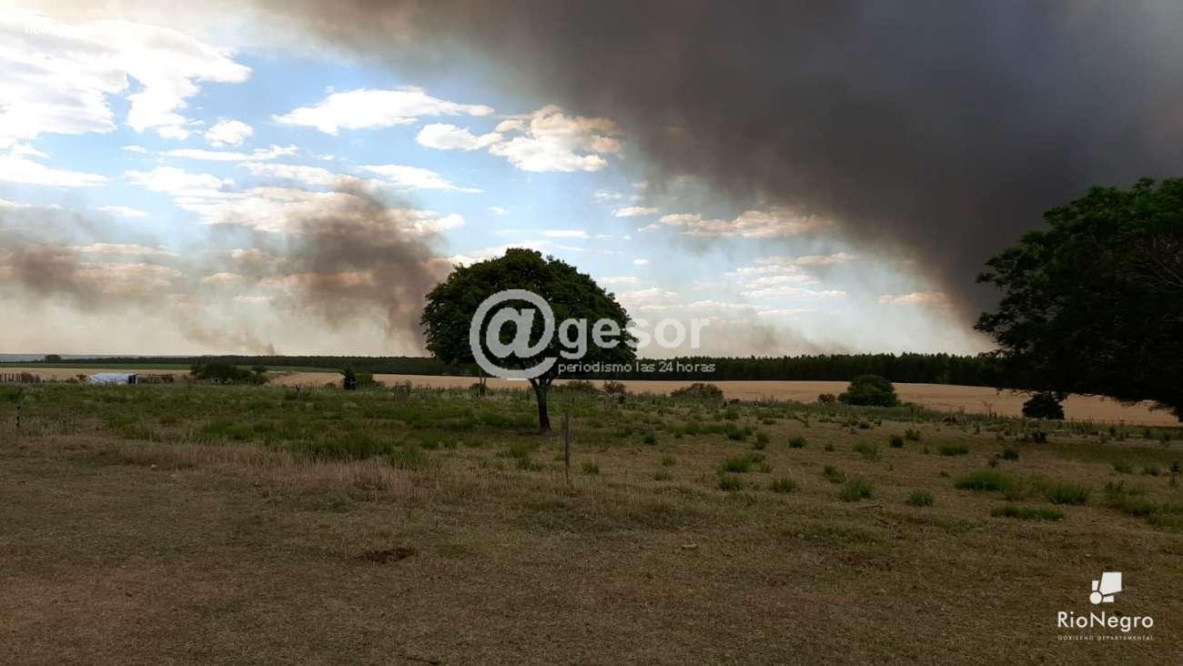 La Intendencia de Río Negro informó sobre el trabajo desplegado en el apoyo brindado a Bomberos en el control “de un incendio de proporciones importante en cercanías de la localidad de Algorta.