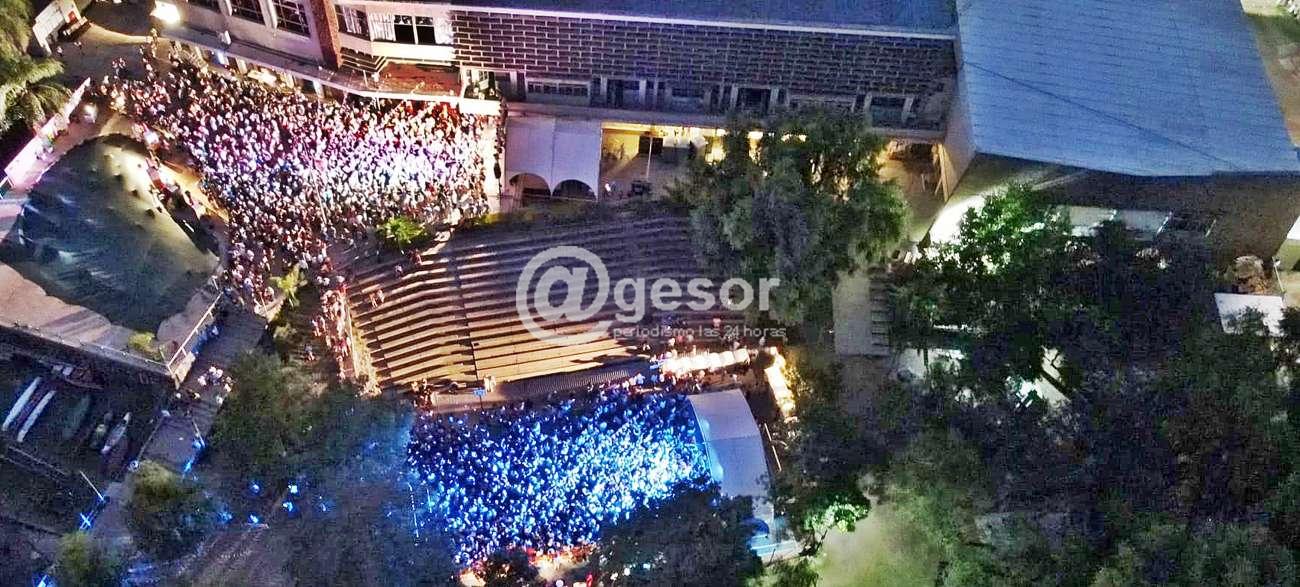 La fotografía aérea de nuestro compañero Enzo Ortega Photography muestra el momento del evento denominado La Big que se desarrolló en el Club Remeros Mercedes, pero organizado por privados, tomada a las 5.00 de la madrugada con una masiva concurrencia de jóvenes en sus dos pistas..