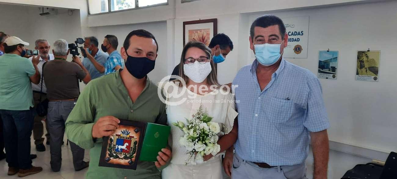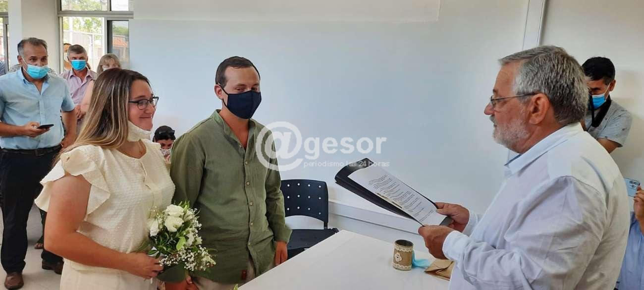 La ceremonia se desarrolló en las instalaciones de Casa Fértil donde funciona la oficina que lleva adelante este tipo de trámites y contó con la presencia del Intendente (i) de Soriano Esc. Daniel Gastán, también el Dr. Andrés Ramírez Maizonaba que ess el Oficial de Registro de Estado Civil de Mercedes, pero que a su vez coordina las actividades con los cuatro municipios que tiene Soriano, además de familiares de los novios y otras autoridades.