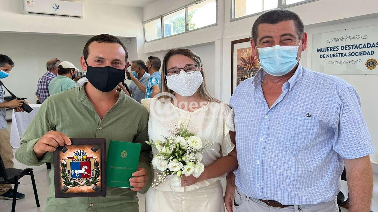 La ocasión fue propicia para visitar la oficina de Registro Civil que ahora funcionan en órbita de la Intendencia y también acompañar a la primer pareja del departamento que se une en matrimonio.