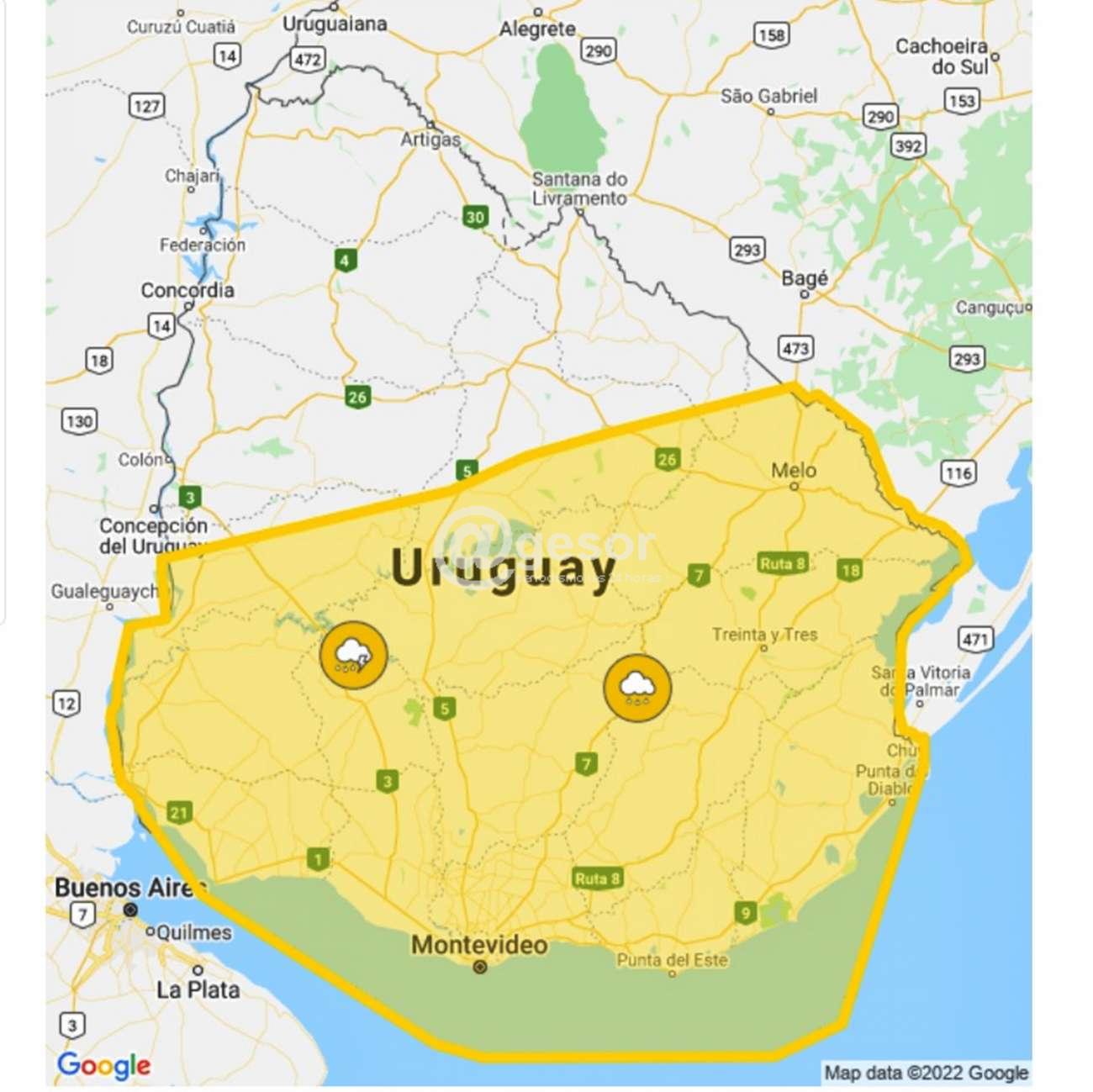 INUMET emitió una tercera alerta meteorológica de INUMET que va ahora de 13.00 a 16.00 horas cuando se actualizará. El nivel de alerta es amarillo y la probabilidad de ocurrencia es menor a 75% por tormentas fuertes y lluvias intensas.