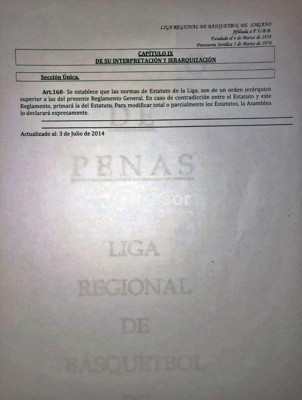 Viene el período de apelación. Apela Nacional y correctamente, creemos que es su derecho. Pero apela Racing también. Sandú entonces argumentó en sus descargos que esa apelación de Racing debía ser desestimada, porque no encuadraba en ninguno de los motivos para apelar que claramente establece el artículo 2 del acta número 39 del Estatuto de la LRBS. Recordemos que Racing sale totalmente ganancioso en el fallo del Tribunal Arbitral, no pierde puntos y se encuentra clasificado en la rueda de seis. No encuadra entonces Racing en ninguno de los 6 items que enumera específicamente el artículo 2. Hay también otros artículos que dicen lo mismo que el 2, como el 37 del Código de Penas. Pero no había nada más que mirar, este artículo, el 2, está en superioridad jerárquica frente a los del Reglamento y del Código de Penas, según lo establece claramente el artículo 168 del Reglamento. Racing por tanto no estaba habilitado para apelar.