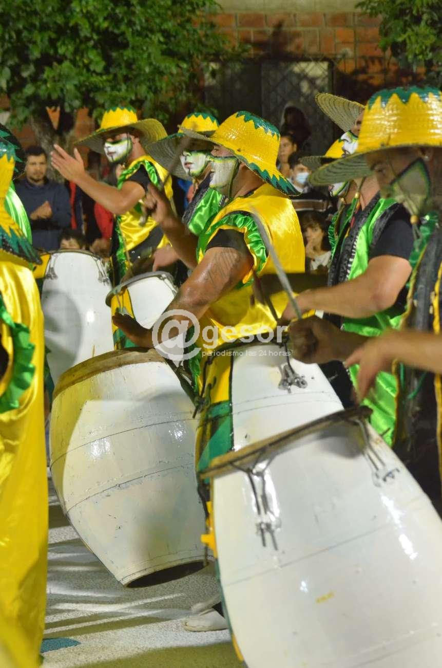 Posterior a los humoristas desfilaron las agrupaciones lubolas, haciéndolo en primer lugar Raíces, desde Mercedes, fundada en 2019, con la dirección responsable de Cristian Moreno y tiene como lugar de ensayo la Manzana 19.