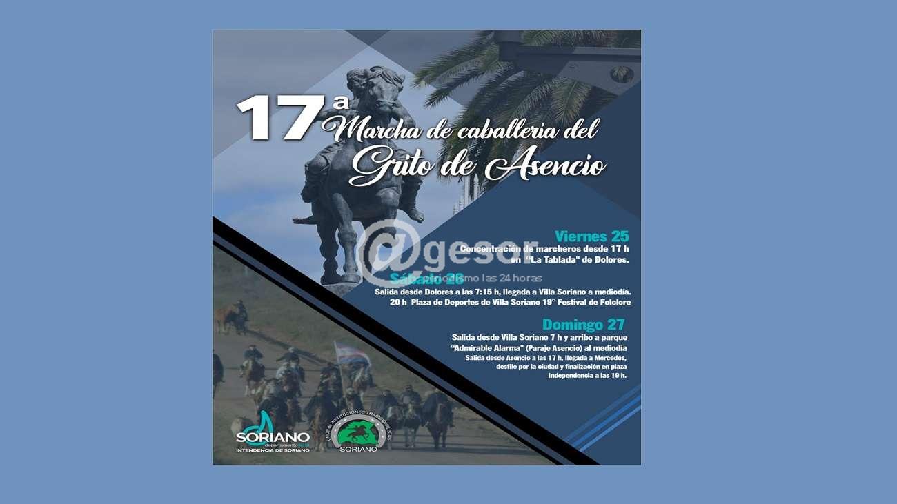 - 17ª marcha de caballería del “Grito de Asencio”, organiza la Unión de Instituciones y Tradicionalistas de Soriano.