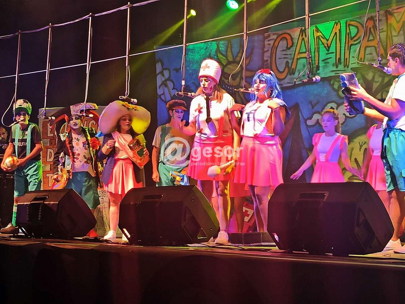 Pero dicho ésto que es una forma de buscar el humor, un recurso que antess era muy utilizado, debemos decir que el grupo con el paso de la actuación y a partir que salió de ese esquema del campamento de verano que se hizo algo largo, cuando pasó a ponerle ritmo y canto a la actuación mejoró notoriamente y por allí recogió el aplausso del público cerrando su primera presentación en el escenario en buena forma, como decimos en el título, yendo de menos a más, con un cierre que dejó seguramente conforme a la muchachada de Aragones, que sin dudas dieron todo sobre el escenario y en eso no quedaron dudas, quizás haya que retocar la propuesta en el medio, ya que se hace algo larga y monótona por momentos, y lo mejor del grupo se ve cuando le da ritmo y canta, allí el espectáculo mejora notoriamente.