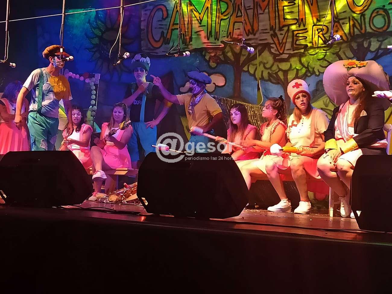 La mayor parte de la actuación transcurre en un campamento de verano del cual participan diferentes personajes que cuentan distintas historias, a partir de las cuales van surgiendo permanentemente chistes, que muchas veces caen en el recurso recurrente de un estilo que si bien puede que haya un público que aun mantenga su gusto por ello, ya hay un sector importante del público que fue dejando de lado ese estilo de búsqueda de la risa por lo grotesco y en ocasiones en lo chabacano, es un recurso válido y de hecho hubo parte de los presentes que se rieron, pero a su vez hay que tener en cuenta que los jurados de los últimos años, ese tipo de humor lo ha ¨castigado¨ más que premiado, pero este año hay integrantess nuevos y habrá que ver cual será su criterio.