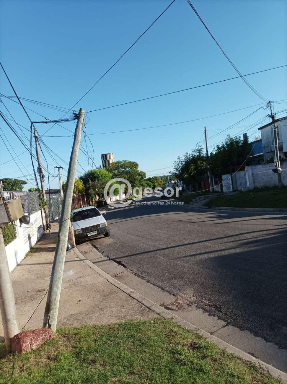 Se bajaron quienes iban en el vehículo, levantaron los cables y siguieron la marcha sin percatarse que quebraron una columna, ubicada en calle Magnone casi Alambarri.