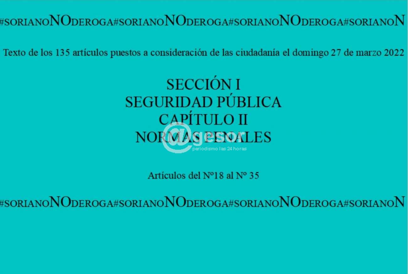En esta nota como aporte a la ciudadanía, desde el Comando de #SorianoNOderoga continuamos informando sobre el texto que contienen los 135 artículos de la Ley de Urgente Consideración que están a consideración de la ciudadanía y que se pondrán a referéndum de ella el domingo 27 de marzo de 2022. Lo que se marca en negrita es lo que se modifica o agrega.