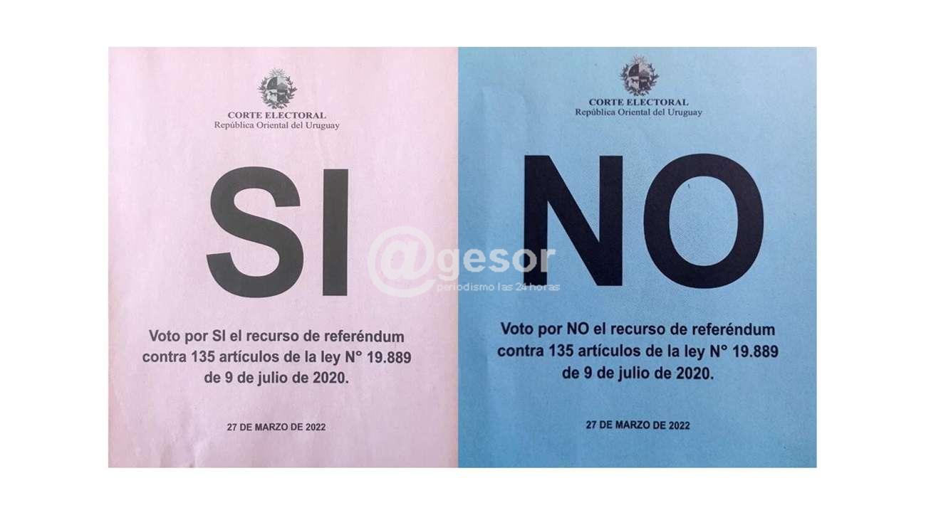 Quienes deseen hacer lugar al recurso se pronunciarán por “SI” utilizando una hoja de votación de color rosado, que llevará impresa en tinta negra el escudo nacional, la expresión “SI” en forma destacada, la leyenda “Voto por SI el recurso de referéndum contra 135 artículos de la ley Nº19.889 de 9 de julio de 2020” y la fecha de celebración del acto de referéndum.
